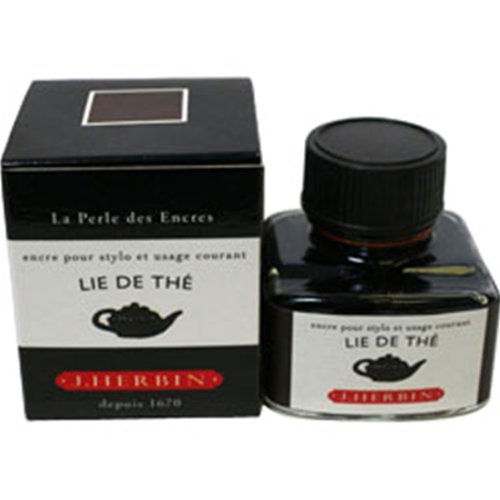 The J. Herbin 30ml Fountain Pen Lie De The Bottled Ink . Each bottle of 30 ml has an integrated pen rest. They are known as "D bottle pen inks. The "D" refers to the old French unit of measure "la Demi Courtine".